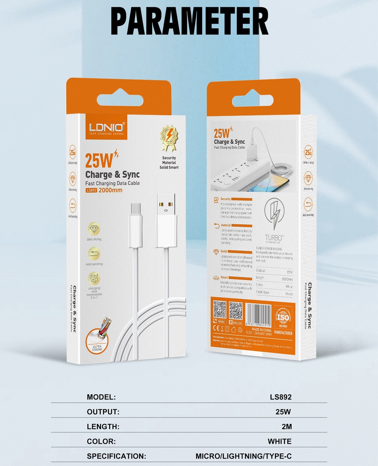 تبدیل USB به Type-c کابل شارژ الدینیو مدل LS892